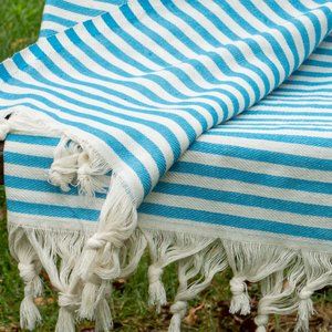 Blue Zebra Striped Peshtemal Towel 36"X72" and 300grams