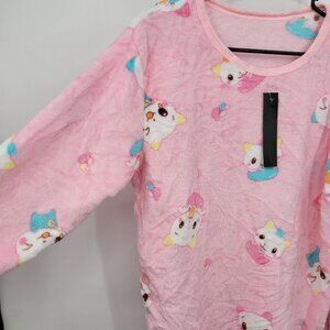 All Over Cat Print Cozy Long Sleeve Sleepwear Cat Lady One Size Womens Pink