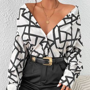 All Over Print Drop Shoulder High Low Hem Shirt blouse