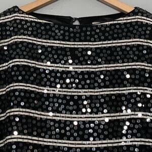 All Over Sequin Top Size 6 Silk Black White Striped Whimsigoth Going Out Party