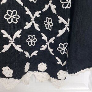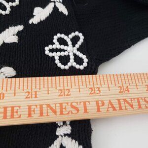 Vintage All Points by Reference Point Womens Cotton Blend Black Beaded Embroidered Floral Knit Sweater Size Medium