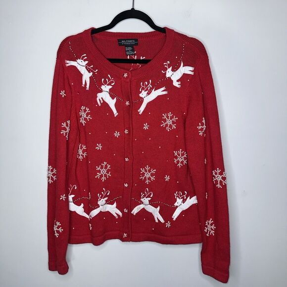 All Points By Reference Pointe Women’s Reindeer Christmas Sweater Red Size Large