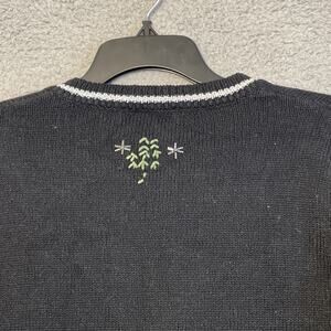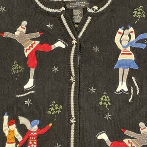 All Points Cardigan Sweater Size S Black & White W/ Embroidered Ice Skaters