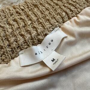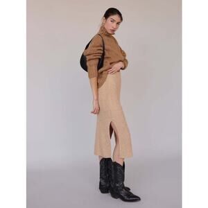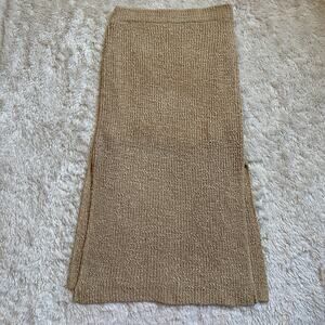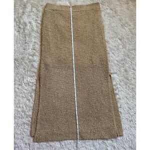 All Row Medium Knit Midi Skirt with Slits Elastic Waist Tan Camel Lined