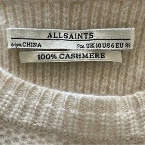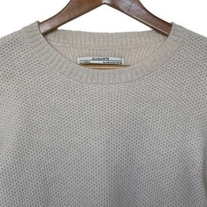 All Saints 100% Cashmere Crew Neck Knit Sweater in Oatmeal Natural Color. Size 6