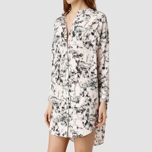All Saints 100% Silk Floral Print Helle Dazzle Shirt Dress ~ Size 8