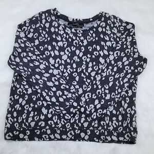 ALL SAINTS Yosa SweatShirt Gray Leopard Print Gray and white leopard print Crewneck pull-over Lightweight sweater sweatshirt Japanese cloth, long sleeve