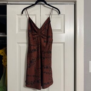 Self: 100% polyester. Made in China. Machine wash. Fully lined. Pull-on styling. Adjustable shoulder straps. Ruched drawstring bust.Satin fabric. Revolve Style No. ALLR-WD149. Manufacturer Style No. WD211Y.