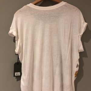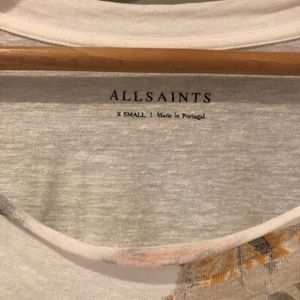 All Saints tee, rolled sleeves, raw edge at neckline and front hem