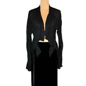 All Saints Black Cardigan SZ M Crinkle Metallic Goth Contemporary Minimalist