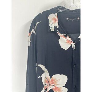 All Saints Black Floral Button Down Shirt Sz Womens XL