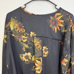 All Saints Black Floral Penny Avifauna Top Womens US 10 Long Sleeve Shirt Blouse