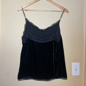 Elegant black cami with delicate lace trim. Spaghetti straps. Perfect for layering or wearing alone.