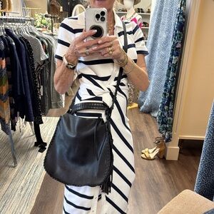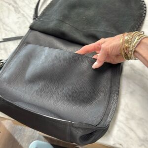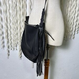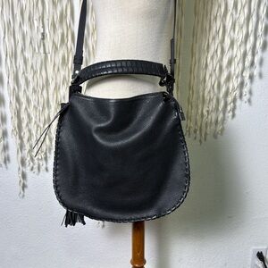 All Saints Black Pebbled Leather Mori Convertible Shoulder Bag /Satchel