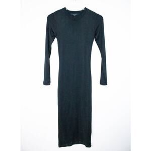 All Saints black ribbed knit long sleeve, open back, crew neck lightweight sweater midi dress.