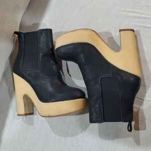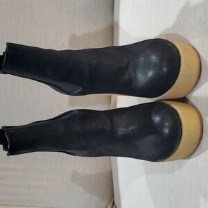 black leather with elastic on sides for easy wear chunky platform boots cream/tan gum soles size 40 eu us size 9 by all saints