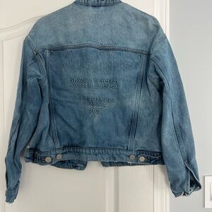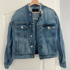 Chic denim jacket with frayed edges. Button closure. Ideal for casual outings.