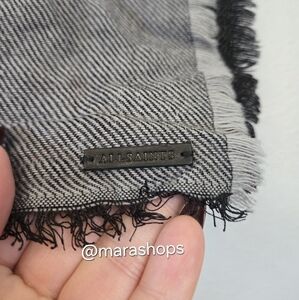 TAG: Allsaints Buffalo Check plaid oblong scarf throw wrap black white gray