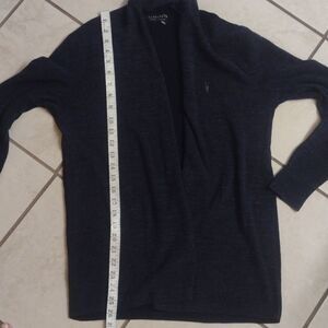 All Saints Cardigan Sweater very dark navy / heathered blue almost black. No materials tag. Excellent condition no rips or stains. Little to no pilling. Size S please see measurements pictures to be sure of fit.