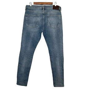 All Saints Mens Cigarette Skinny Fit Button Fly Jeans Size 33 Blue Distressed