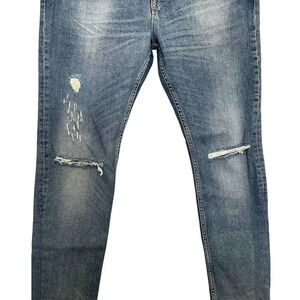 All Saints Cigarette Skinny Fit Button Fly Jeans Size 33 Blue Distressed