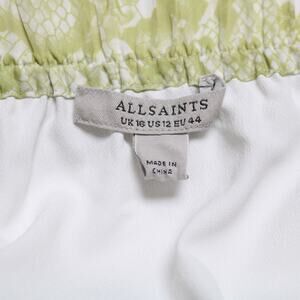 All Saints Clara Noche White Green Animal Print Sheer Midi Skirt Pull On Size 12