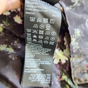 AllSaints Cora Ophelia Floral Top Pleated Blouse Sheer Black Ruffle Collar Neck and Cuffs Sz 4 Fairy Elegant Flowy