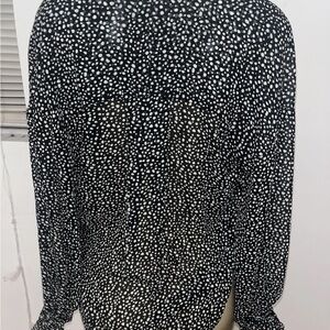 Stylish black and white polka dot top for women. Perfect for any occasion.