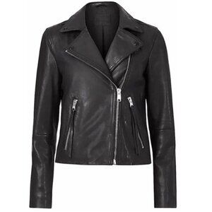 All Saints Dalby Leather Biker Jacket in Black Leather