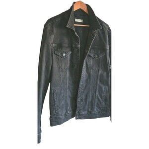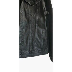 All Saints Denim Jacket Women's XL Dark Gray Button Front Cotton Biker