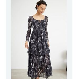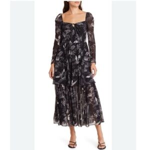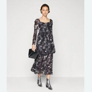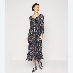 All Saints Devyn Peggy Floral Print Long Sleeve Maxi Dress in Black
