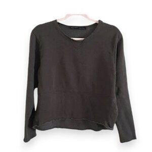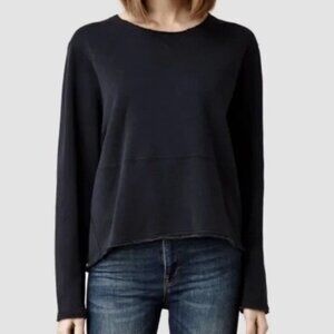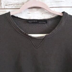 All Saints Distressed Black Gray Boyfriend Cropped Basic Sweat Sweatshirt S