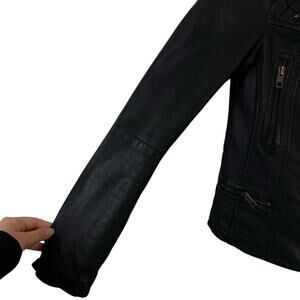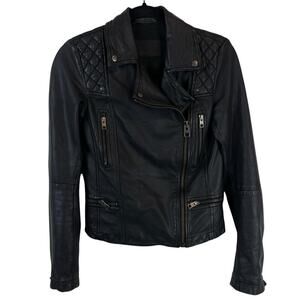 All Saints Distressed Leather Asymmetrical Zip Biker Jacket Black Sz 0