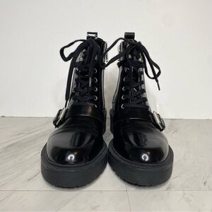 All Saints Donita Black Patent Lace Up Combat Boots 6