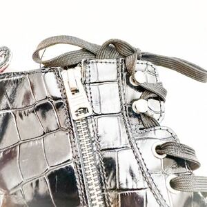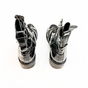 All Saints Donita Combat Boot Black Leather Croc Embossed Size 40