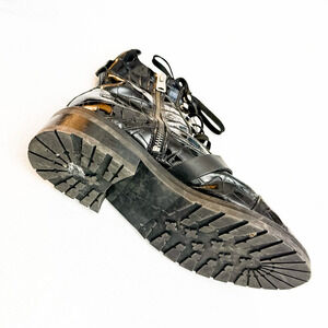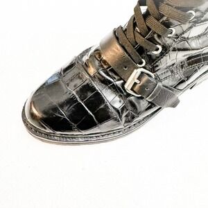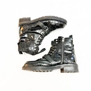 All Saints Donita Combat Boot Black Leather Croc Embossed Size 40