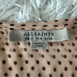 All Saints Draped Chiffon Polka Dot Penny Long Sleeve Blouse Size 6