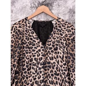 All Saints Dress 0 Womens Linen Silk Leopard Button Front Long Sleeve Mini