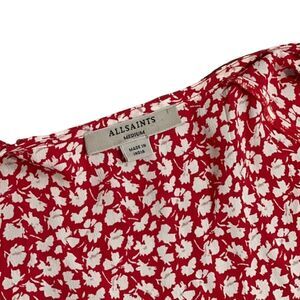 All Saints Dress Women’s Medium Red Floral Krystal True Wrap Mini Ruffle V Neck Feminine Delicate Vacation Date Travel Dress up Dress Down Fun Flirty Lightweight Brunch All over Print Waist tie