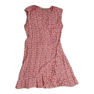 All Saints Dress Women’s Medium Red Floral Krystal True Wrap Mini Ruffle V Neck