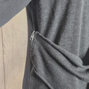 *please note* there are some holes along the collar - please view photos. it's not super noticeable because of the draping in the collar, but pointing out.