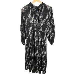 All Saints Elimear Cultivar Floral Tiered Maxi Dress Black 00 Cottagecore Modest