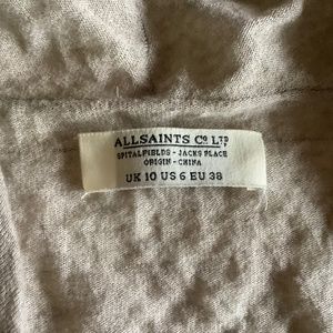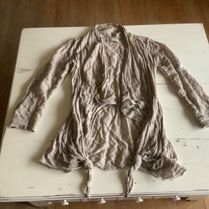All Saints Elsie Long Tan Crinkled Open Draped Cardigan Sweater SZ 6