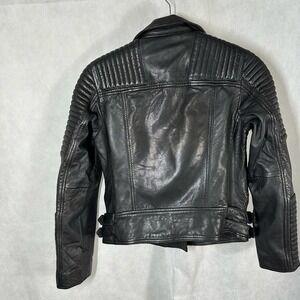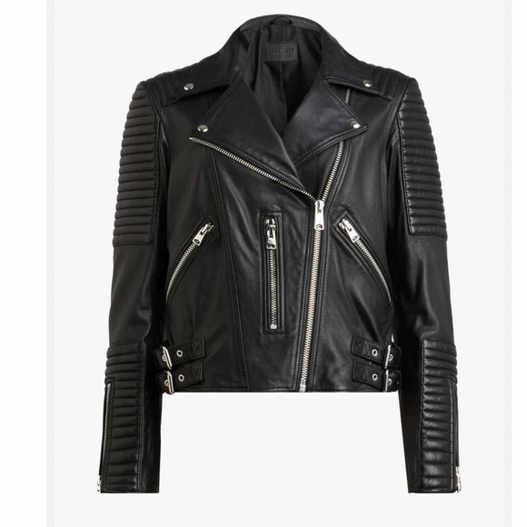 All Saints Estella Biker Moto Lamb Leather Crop Jacket Size 2 Black. I am listing this as pre owned even though it has tags because this came from my closet and never had the chance to wear it. It hasn’t been stored properly so it does have some leather creasing otherwise it is in excellent condition. Measurements are approximates only. No trades.