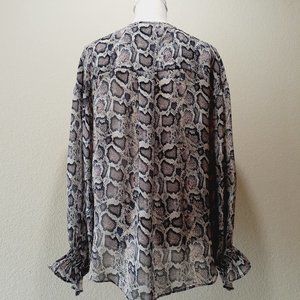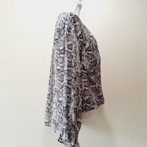 Penny Misra python snake print faux wrap in brown and black with touches of brick red
