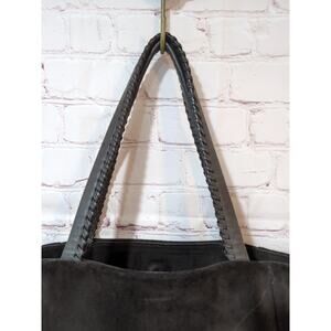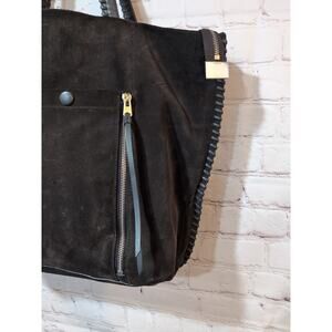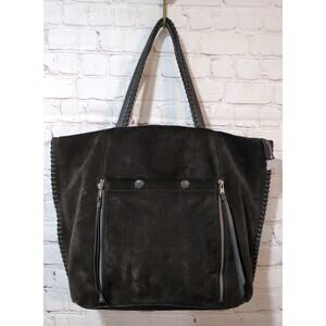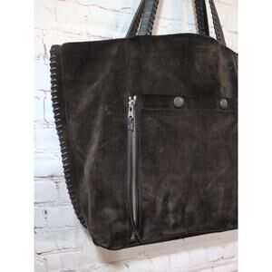 All Saints Fleur de Lis Tote Bag East to West Brown Suede Shoulder Bag