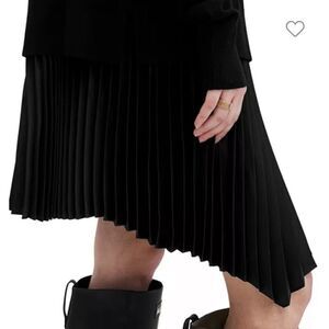 • Dress: round neck, sleeveless, A-line silhouette, dropped waist, pleated skirt, asymmetric hem, back keyhole with button closure
