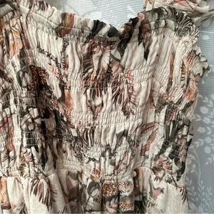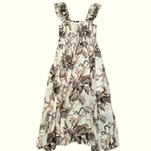 Elegant maxi dress with a floral pattern. Features ruffled straps. Perfect for any occasion.