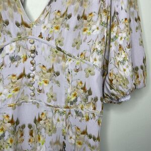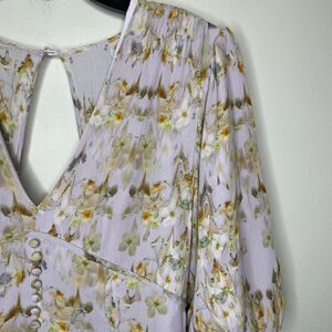 All Saints Floral Midi Dress Wedding Guest Bridesmaid Cream and Gold