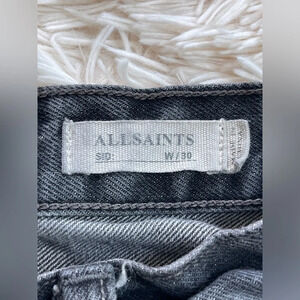 All Saints Grace Jeans Black Denim Mid Rise Distressed Grunge button fly size 30